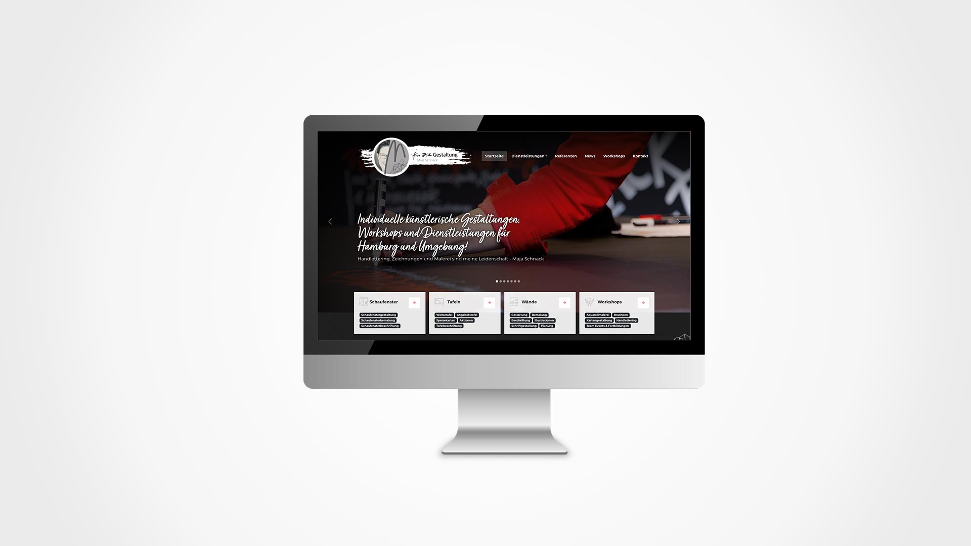 Schriftdesign, Schaufenstergestaltung, freie Malerei, Wanddesign, Tafelgestaltung – was Maja Schnack leistet, ist beeindruckend! Das riesige Angebot und ihr großes Talent sollten bei ihrer neuen Website deutlich rüberkommen. Das ist uns gelungen, und nicht nur das – auch bei der Suchmaschinenoptimierung haben wir uns ins Zeug gelegt. Schließlich müssen solche großartigen Leistungen auch sichtbar werden.