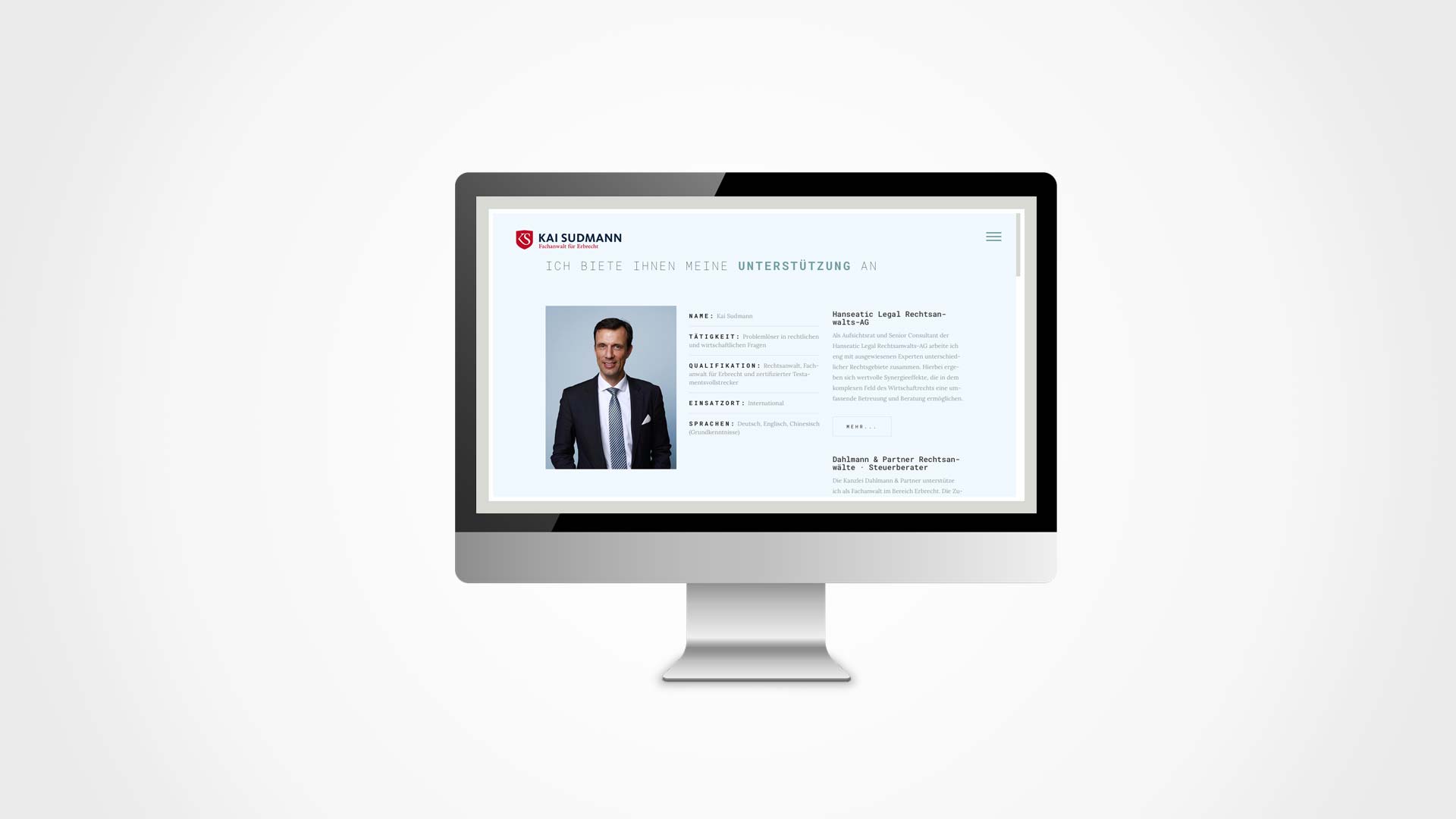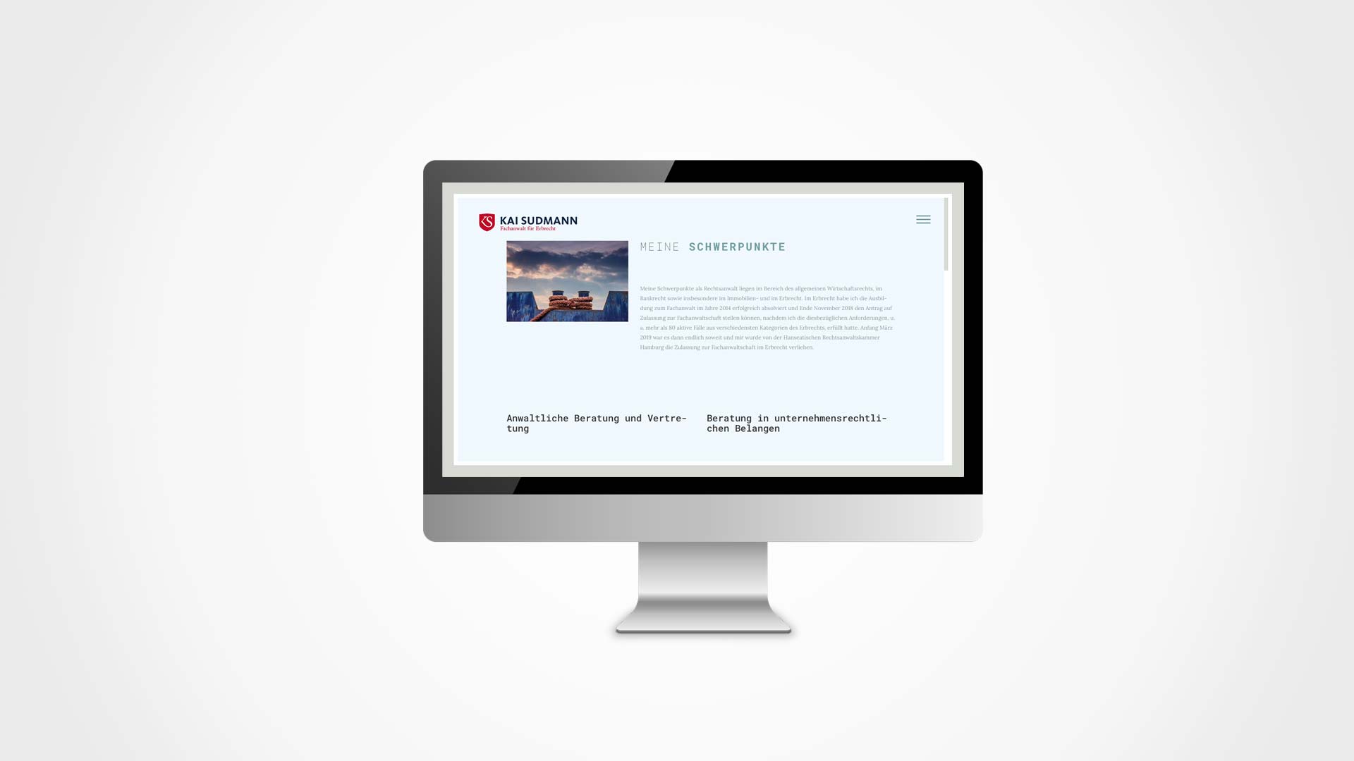 Der Rechtsanwalt Kai Sudmann hat von uns eine kleine, innovative Website bekommen, die mit einem interessanten Look und einer ungewöhnlichen Bedienoberfläche arbeitet.