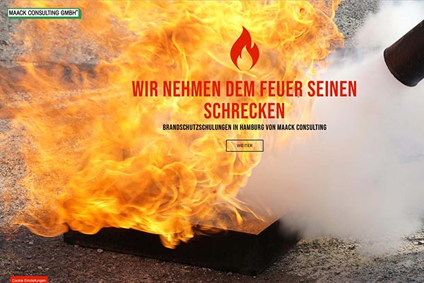 Ein gutes Beispiel für eine Maßnahme, die bei der Suchmaschinenoptimierung helfen kann: Für unseren Kunden Maack Consulting, der Schulungen rund um den Brandschutz anbietet, haben wir eine kleine Landingpage zur schnellen Kontaktaufnahme erstellt. Google Ads zu den wichtigsten Keywords werden der Landingpage zusätzlich auf die Sprünge helfen.
