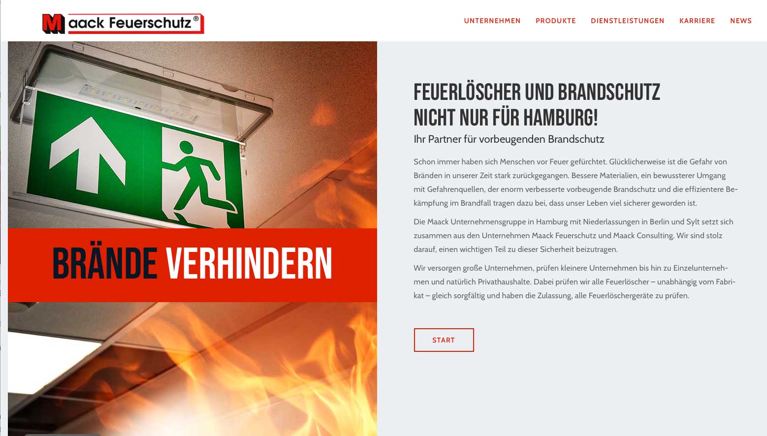 Die Hamburger Traditionsfirma Maack Feuerschutz kümmert sich seit über 50 Jahren um den Brandschutz in Unternehmen. Und seit einigen Wochen kümmert sich Kausche und Partner um die werblichen Aktivitäten der Firma. Den Anfang hat, wie fast immer, die Website gemacht, die wir einer inhaltlichen, technischen und optischen Frischzellenkur unterzogen haben. Unter www.maack-feuerschutz.de finden Sie den brandneuen Internetauftritt.