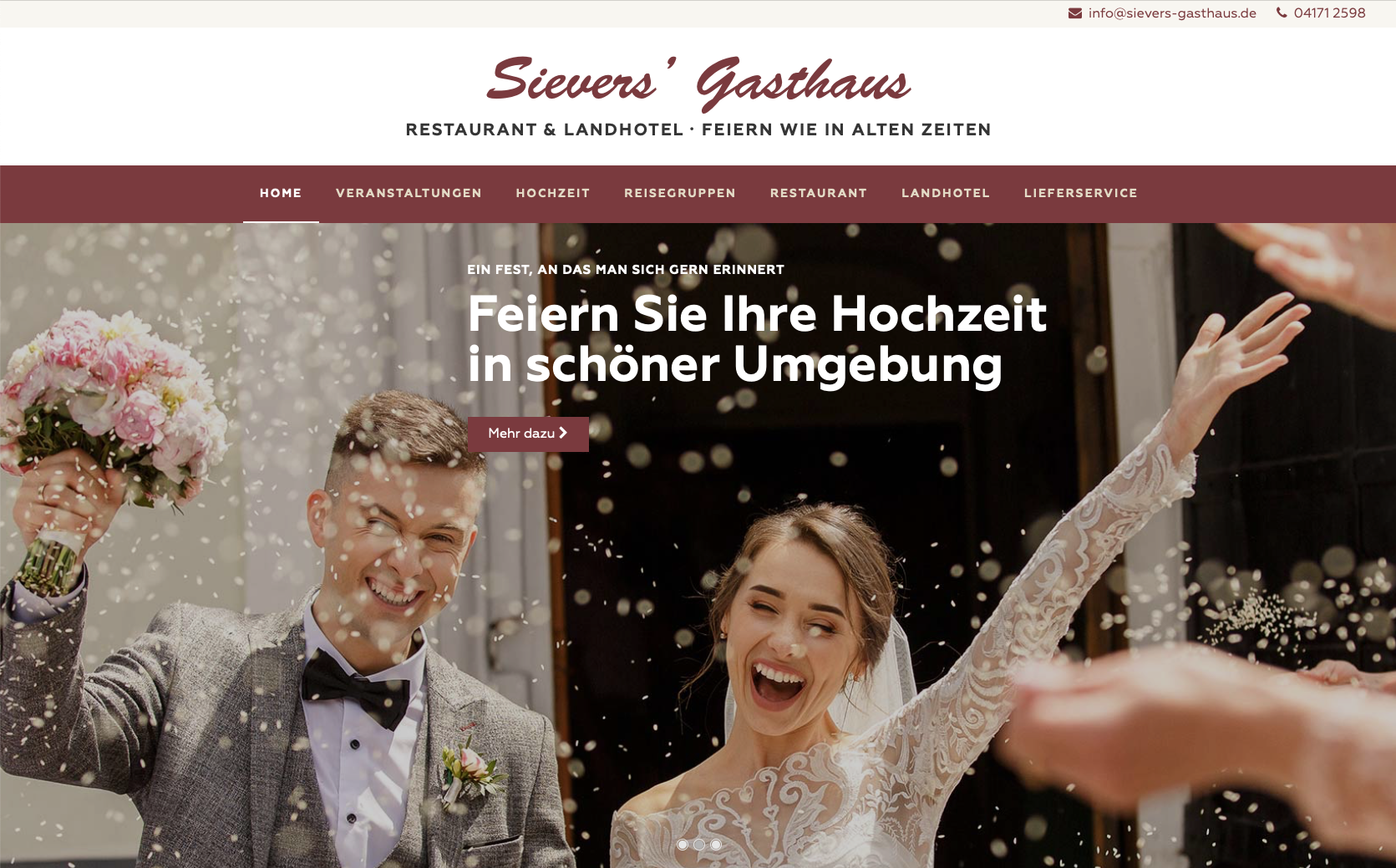 In Hoopte an der Elbe geht es recht verschlafen zu. Wer Ruhe sucht, der findet sie hier. Das soll aber nicht so bleiben: Sievers’ Gasthaus – Restaurant, Landhotel und Veranstaltungsort mit langer Tradition – möchte mehr Besucher in das kleine Örtchen locken und hat uns gebeten, die Social-Media-Aktivitäten zu verstärken und die Website zu optimieren. Aus der Optimierung wurde eine komplette Neuentwicklung, da neben SEO und einem frischeren Design auch eine neue inhaltliche Ausrichtung gefragt war. Unsere Arbeit soll schließlich dazu beitragen, dass Sievers’ Gasthaus sich vom Dorfgasthof zur Event-Location entwickelt. Die Entwicklung der Buchungszahlen stimmt uns auf jeden Fall optimistisch!