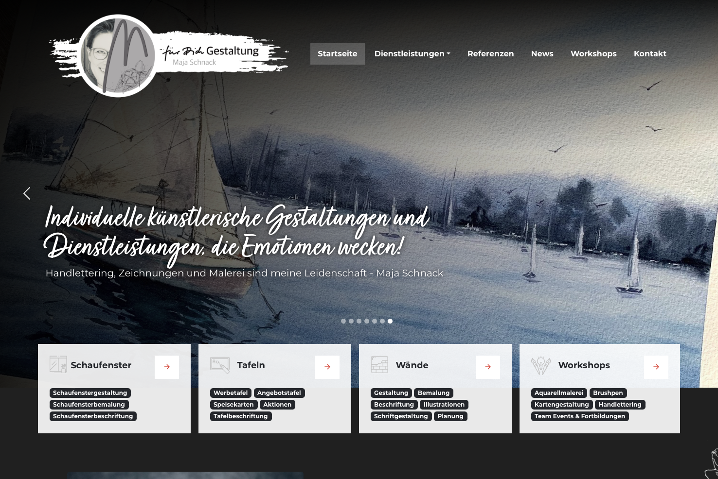 Für die Künstlerin und Kalligrafin Maja Schnack haben wir eine komplett neue Website entwickelt. Wie immer suchmaschinenoptimiert, klar strukturiert und einfach zu bedienen. Unter https://www.fuerdichgestaltung.de/ könnt ihr euch das Ergebnis anschauen – und jede Menge großartige Arbeiten bewundern. Denn was Maja alles so zaubert, ist eine Top-Position bei Google wert, oder?