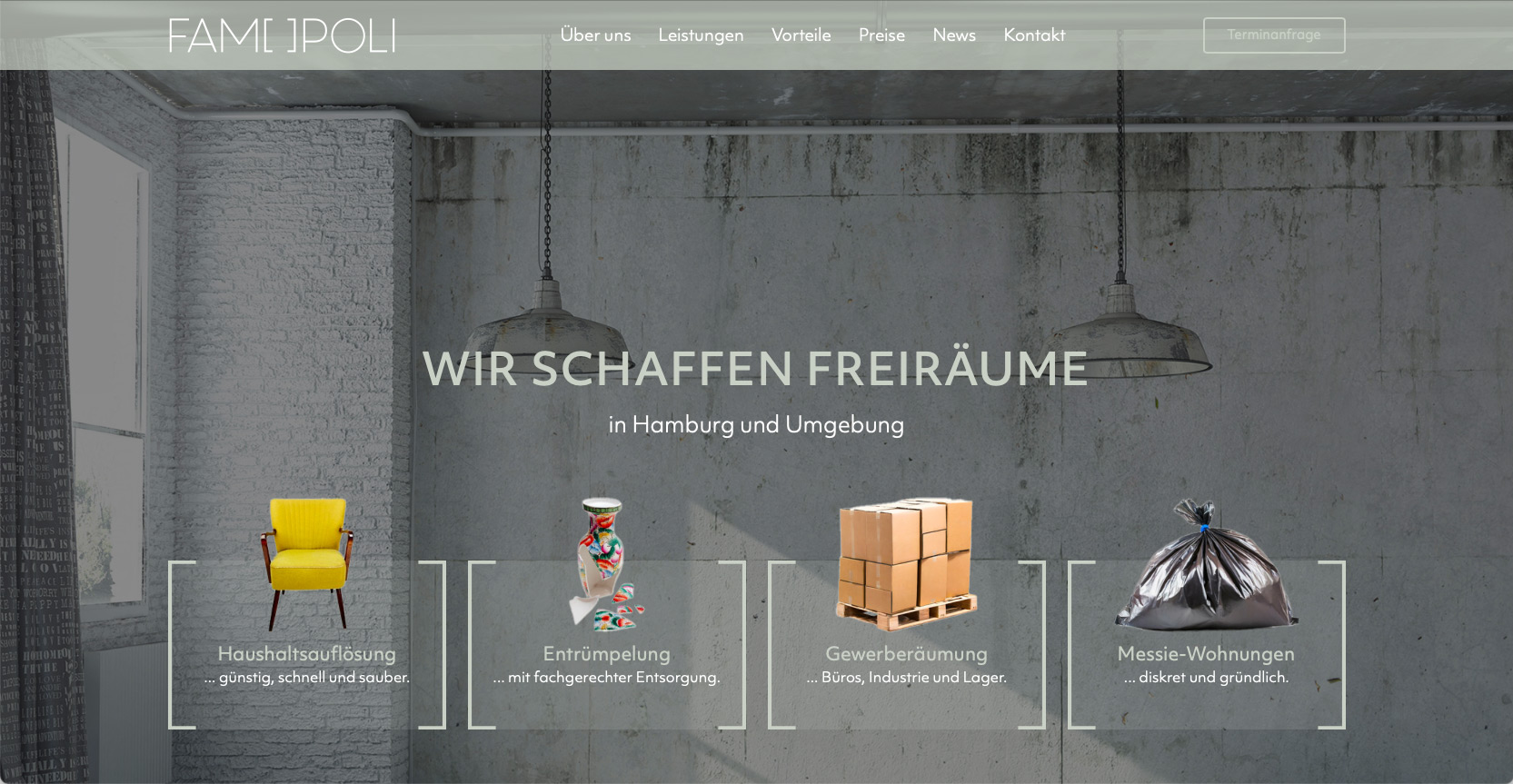 Es gibt Jobs, die müssen einfach erledigt werden. Nein, damit meinen wir nicht unsere neue Website – wir sprechen natürlich von den Aufgaben, die das Entrümplungsunternehmen FAM[ ]POLI jeden Tag erledigt: Ausmisten, Ausräumen, Demontieren und Entsorgen. Das machen sie so gut und so erfolgreich, dass ihre Website ganz schnell überarbeitet werden musste. Wir haben das gern gemacht, wie immer inklusive Suchmaschinenoptimierung.