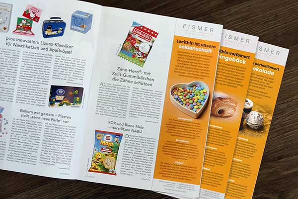 Unser Kunde Fismer Lecithin ist seit kurzem als erstes Lecithin-Unternehmen Mitglied im Sweets Global Network und darf sich unter anderem in deren SG Magazin präsentieren. Das geschieht einerseits mit redaktionellen Berichten und zum anderen mit einer Anzeigenserie, die wir entwickelt haben.