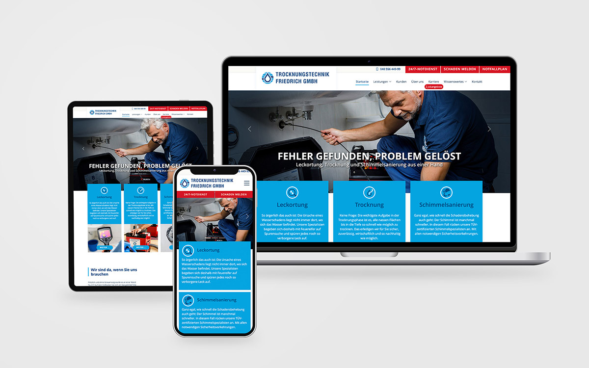Manchmal muss es schnell gehen, deswegen ist es gut, wenn man bei Suchmaschinen schnell findet, was man braucht. Damit der Kunde schnellstmöglich Hilfe erhält, haben wir in enger Zusammenarbeit mit der Texterin Heidi Czerwonka (www.textvorteil.de) und dem Fotografen Jan Haeselich (www.jan-haeselich.de) eine neue Website erstellt. Neue Bilder, neue Texte, eine neue technische Basis und natürlich suchmaschinenoptimiert. Mit einer neuen Benutzerführung, damit Sie schnell die gewünschten Inhalte finden, haben wir nichts dem Zufall überlassen. Wir können mit Stolz sagen, dass dies eines unserer bisher besten Projekte ist. Überzeugen Sie sich selber und schauen Sie vorbei.