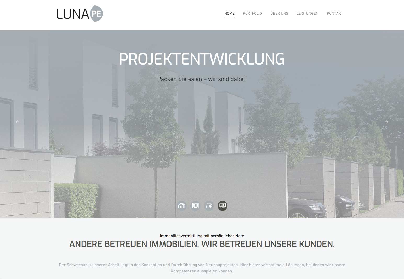 Für die brandneue Projektentwicklungsgesellschaft LUNA PE haben wir die Basis-Werbemittel erstellt, zu der auch eine One-Page-Website gehört. Diese wird im Laufe der Zeit mit dem Unternehmen wachsen. Das haben wir natürlich bei der Konzeption der Website bedacht und die Programmierung entsprechend ausgelegt. Wir freuen uns auf eine langfristige Zusammenarbeit!